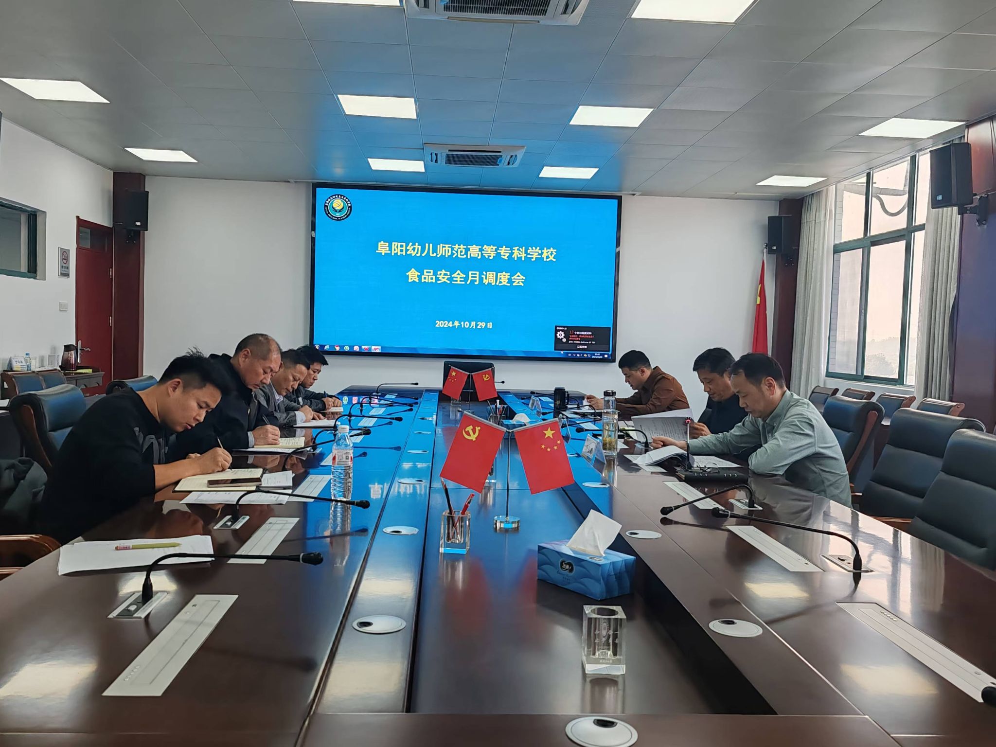 会上,总务处(保卫处)处长刘晓刚组织学习了《关于开展市级单位2024年度公共机构生活垃圾分类和反食品浪费成效评估工作的通知》《关于通报2024年第三季度全省食品安全抽检监测不合格(问题)信息的函》,汇报了10月份食品安全管理工作并对下月重点工作进行了部署。三家食堂经理分别汇报了食品安全排查情况和反食品浪费工作开展情况。