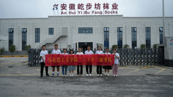 团队成员还利用课余时间,走访阜南县会龙镇的脱贫产业。阜南县会龙镇的脱贫工作以辣椒和袜子为产业特色。在相关负责人的介绍下,团队成员了解了袜业产业园的构造及其工作制度,观看了袜子的制造工序。袜子厂的建立为村民提供更多的就业岗位,让村民们真正实现了在家门口就业,为乡村振兴发注入活力。